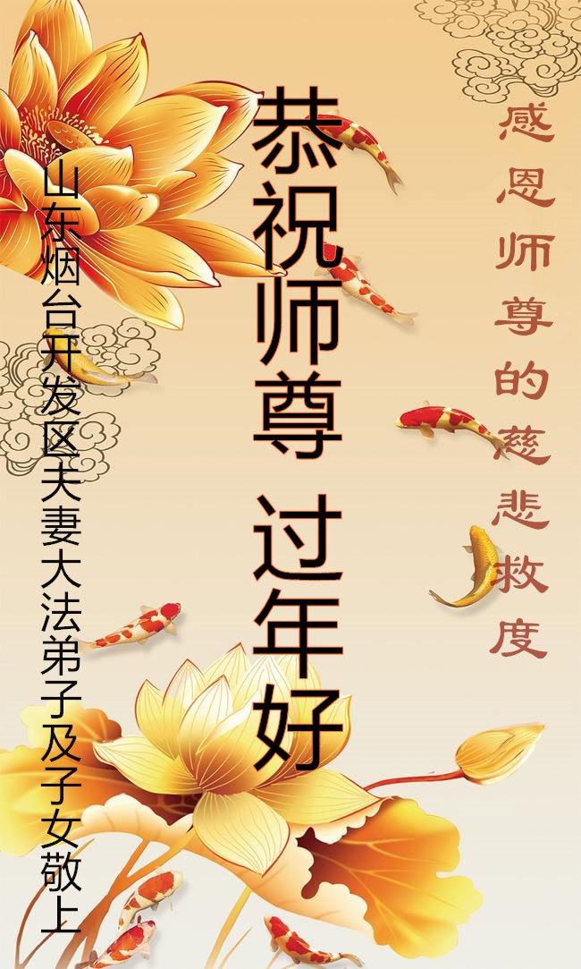 山東煙台開發區夫妻大法弟子及子女恭祝師尊過年好!