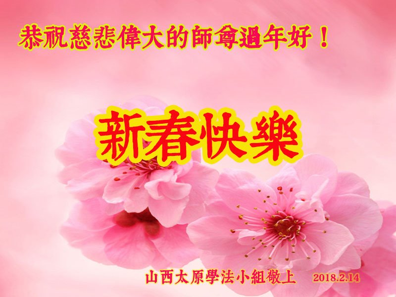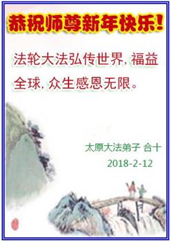 我們全體大法弟子在新的一年裏互相幫助找差距,共同提高,共同昇華,做好三件事,兌現誓願。感恩慈悲偉大的師尊,恭祝師尊過年好!