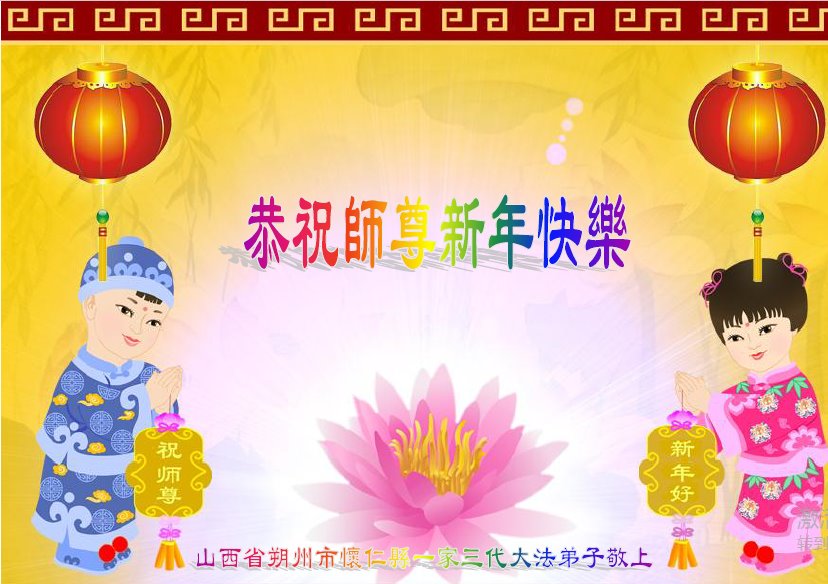 山西省太原市一家庭學法小組大法弟子攜全家給慈悲偉大的師尊拜年!師尊過年好!感恩師尊慈悲苦度!叩拜師尊!