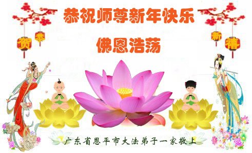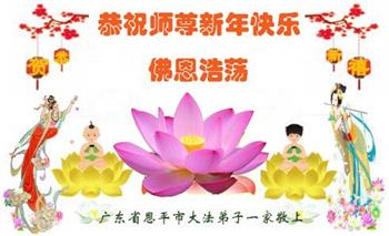 廣東深圳一大法弟子闔家祝偉大慈悲的師尊新年好!
