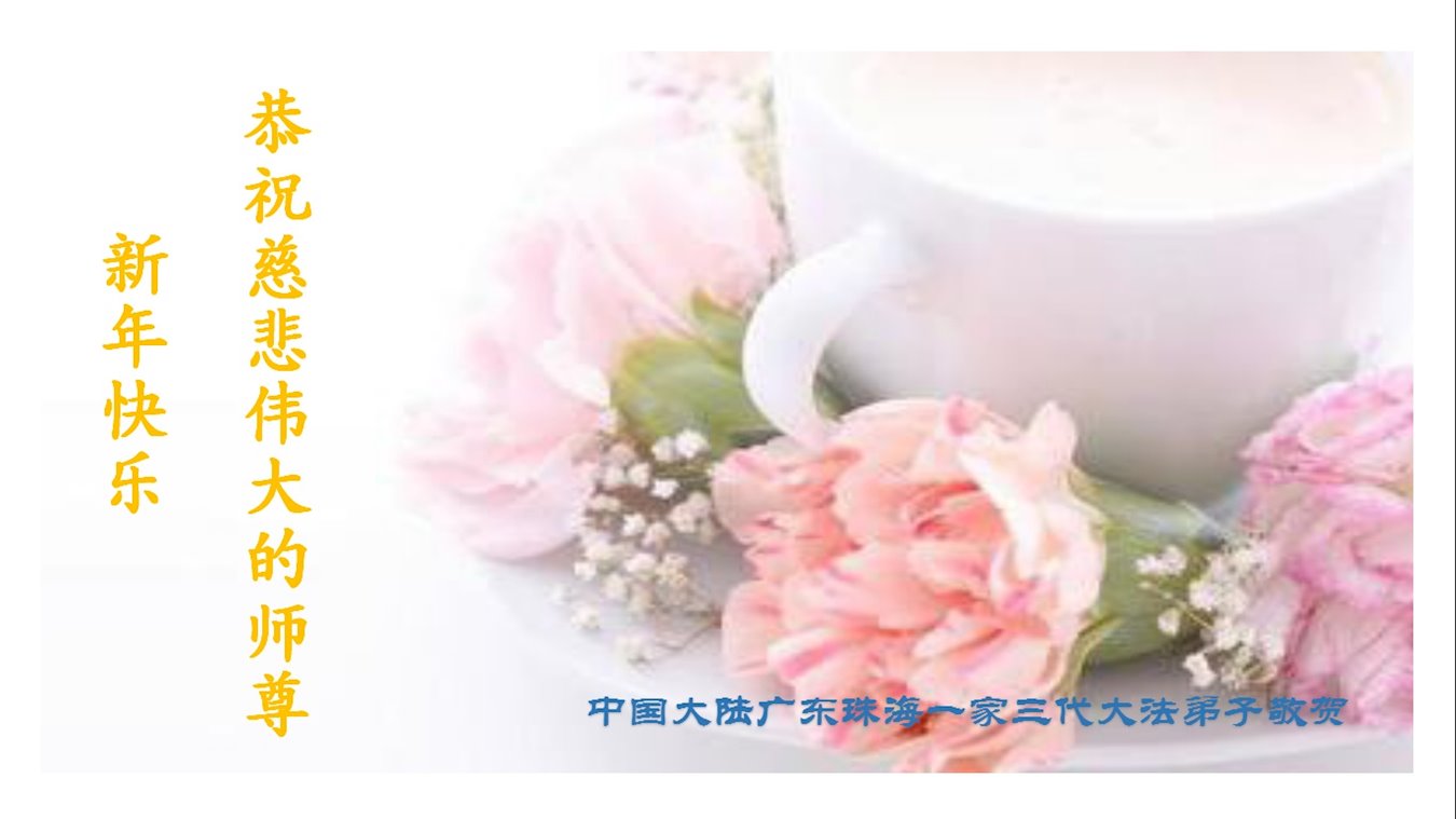 中國大陸廣東珠海一家三代大法弟子恭祝師尊新年快樂!