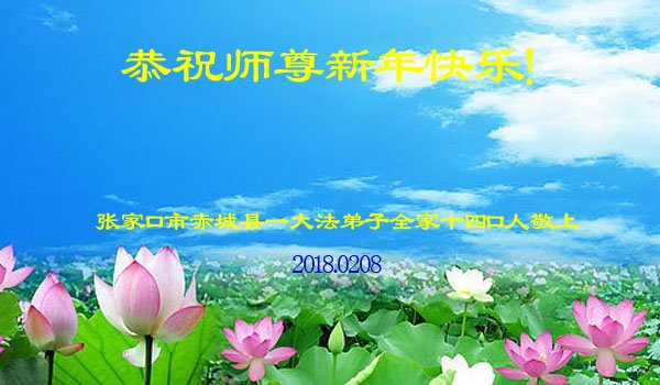 二零一八傳統新年到來之際,我們全家大法弟子恭祝慈悲偉大的師尊新年快樂!感恩師尊的慈悲苦度,弟子一定堅修大法不動搖,圓滿隨師還。