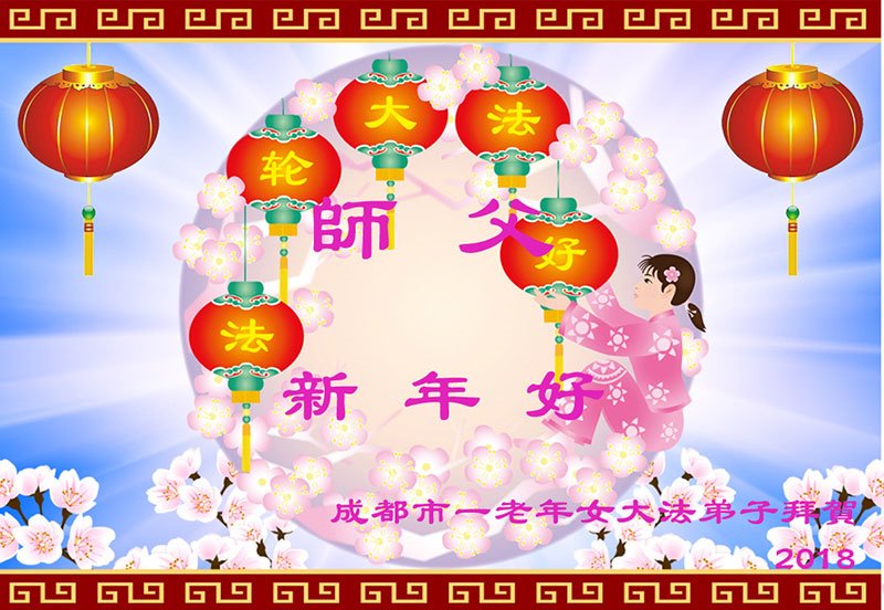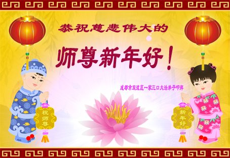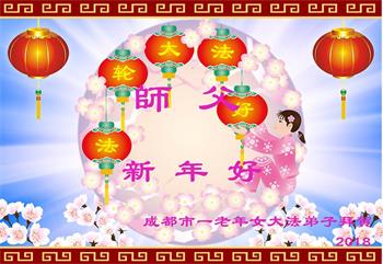 四川省成都一老年女大法弟子恭祝慈悲偉大的師父新年好!