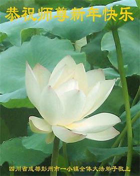 四川省成都彭州市一小鎮全體大法弟子恭祝師尊新年快樂!