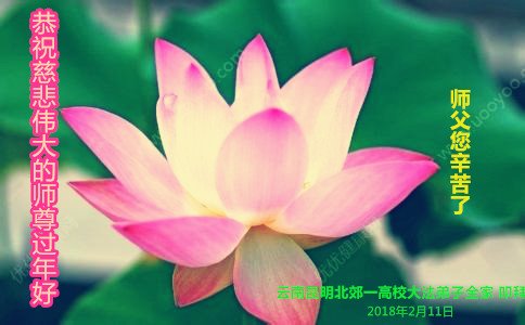 在新的一年,我要時時刻刻聽師父的話,修好自己,對得起師父,對得起大法,師父為我全家和身邊的親人帶來了幸福和安康,我衷心的謝謝偉大的師父。祝師父新年快樂!