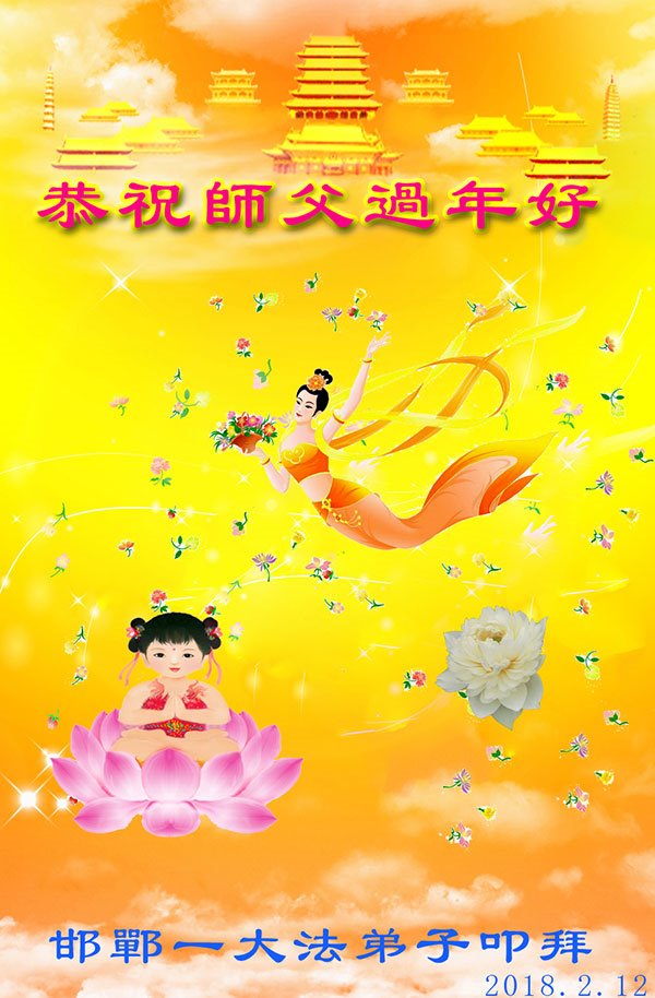師尊過年好!弟子想念您,您把弟子從地獄撈起、洗淨,下上法輪和修煉的機制,並看護著弟子,弟子唯有做好三件事,按真善忍的法理精進實修,救度更多的眾生,才能對的起師恩。叩謝師恩!