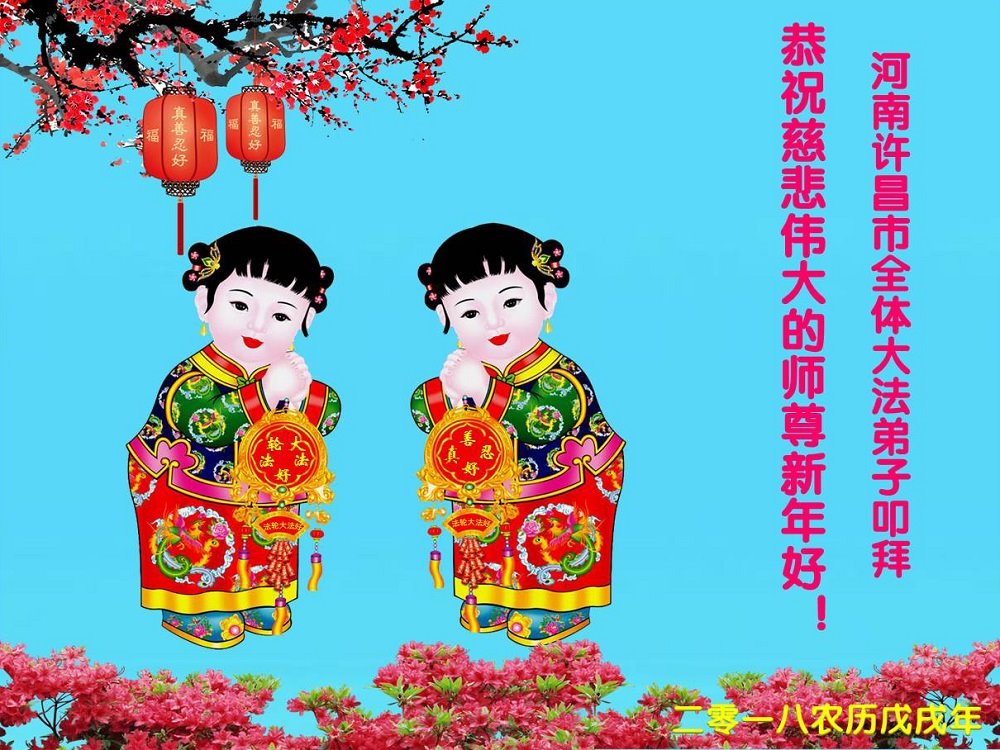 長垣縣大法弟子給慈悲偉大的師尊拜年,恭祝師尊新年好!不辜負師尊的慈悲苦度。