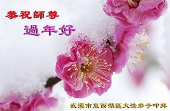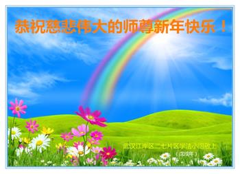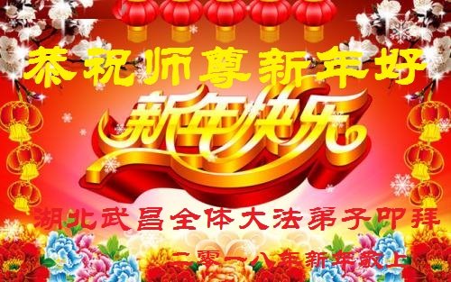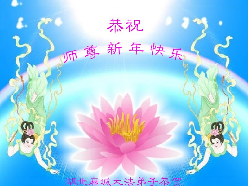 湖北省黃岡市麻城市大法弟子恭祝慈悲偉大的師尊新年快樂!弟子們對師尊的感激無以言表,唯有精進實修,做好三件事,在神的路上奮起直追才對得起師尊的慈悲苦度,再造之恩!