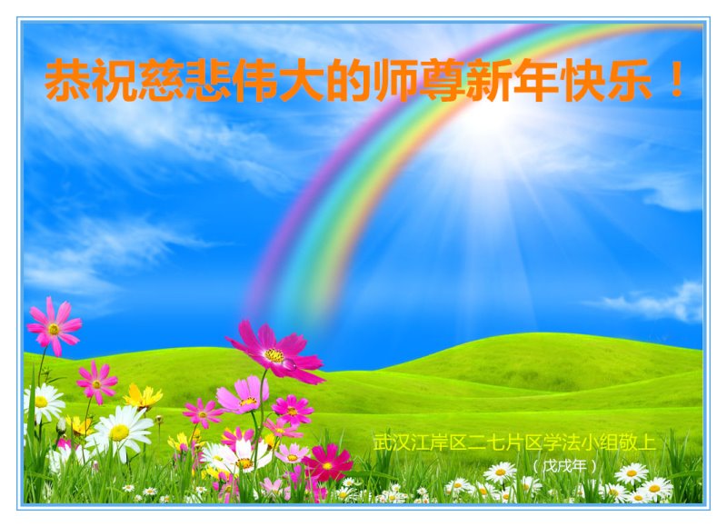 值此戊戌新年到來之際,我們全家恭祝偉大的師尊新年快樂!在正法修煉的最後階段,我們要勇猛精進,用心做好正法修煉的三件事,多救人,感恩師尊的慈悲救度。