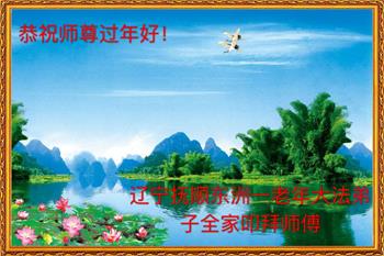遼寧省營口市全體大法弟子恭祝師尊新年快樂!在有限的時間裏我們勇猛精進,做好三件事,修煉好自己,多救人,請師尊放心!叩拜師尊!