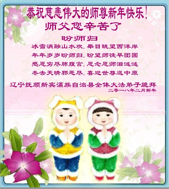 遼寧撫順市新賓縣全體大法弟子恭祝師尊新年好!