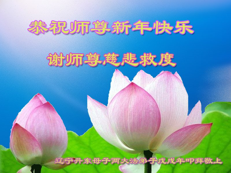 多年以來,你廣傳弘法、苦度眾生,為弟子們操盡了心。在新的一年裏,弟子會更加苦心修煉、多救人、兌現自己的誓約、讓師父多一份欣慰、少一份辛勞,能圓滿跟師父回家。