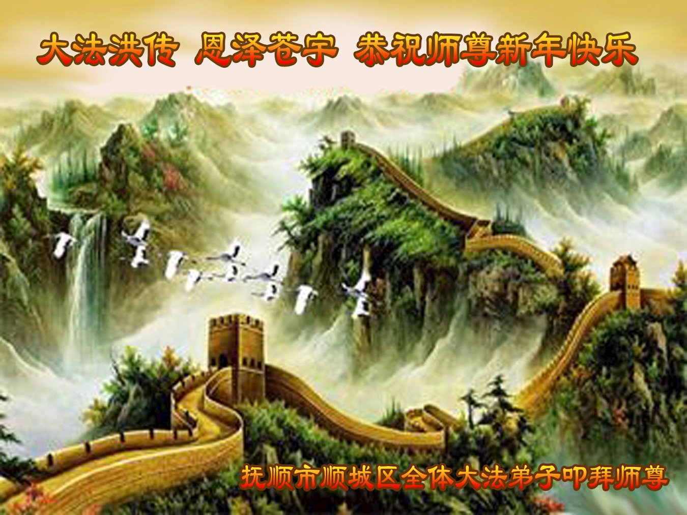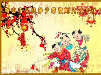 感謝師尊的慈悲苦度!謝謝師尊的慈悲加持!弟子無法用盡人類的語言來感謝師尊的救度之恩!在這新春佳節之際,我們撫順市順城區全體大法弟子給師尊拜年了:「師尊:過年好!我們一定謹遵師尊的教導:修好自己,救度好眾生,遇事向內找,做真修弟子。」恭祝慈悲偉大的師尊新年快樂!