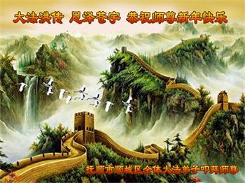 感謝師尊的慈悲苦度!謝謝師尊的慈悲加持!弟子無法用盡人類的語言來感謝師尊的救度之恩!在這新春佳節之際,我們撫順市順城區全體大法弟子給師尊拜年了:「師尊:過年好!我們一定謹遵師尊的教導:修好自己,救度好眾生,遇事向內找,做真修弟子。」