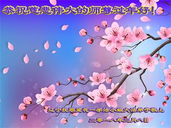 遼寧鞍山鐵東區東長甸平安街學法組弟子給師父拜年!在新的一年裏要修好自己,救度更多的眾生。盼師父早日回國,弟子想念師父。