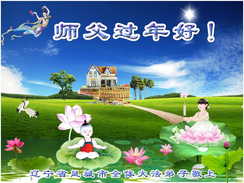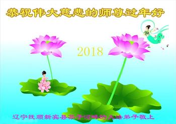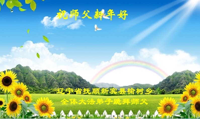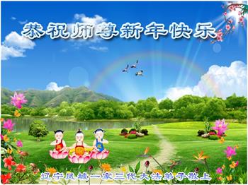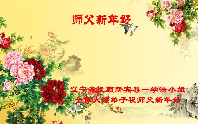 大石橋市一學法小組大法學員祝慈悲偉大的師尊過年好!在新的一年裏我們學法小組大法學員共同精進,做好三件事。惟願師尊笑。