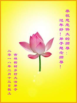 在此新年到來之際,吉林省吉林市昌邑區農村一資料點及全體大法弟子恭祝慈悲偉大師尊新年快樂!無法用人類的語言來感恩師尊的洪大慈悲與救度,只有努力的做好三件事,排除邪惡干擾,隨師正法,救度眾生。磕謝師尊。