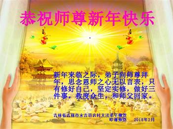 時光轉瞬,即將迎來2018中國新年。我們農村一學法小組全體大法弟子恭祝慈悲偉大的師尊新年快樂!感恩師尊的慈悲救度。在以後時間裏,弟子一定圓容整體,努力救度眾生。惟願師尊笑!