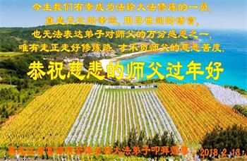 2017年即將過去,不管在生活、工作、家庭修煉等方方面面,師父為弟子操盡了心,使弟子有驚無險走到了2018年,弟子只有做好三件事,勇猛精進,才能報答師恩,不辜負師父的慈悲苦度,跟師父好好修煉,返回自己真正的家園。