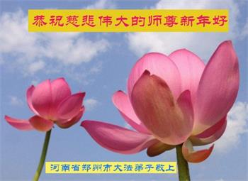 我們小組恭祝師尊新年好!新的一年裏我們會繼續配合好,做好三件事,喚醒和挽救更多眾生,不負師尊的慈悲苦度。河南鄭州大法弟子合十跪拜!