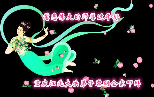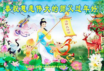 師父新年好!師父辛苦了!在師父慈悲苦度的呵護下,我們在講真相和修煉中摔摔打打的又走過了一年。我們不會忘記您對我們苦口婆心的話、對我們的期盼,我們一定做好三件事,回到您的身邊。