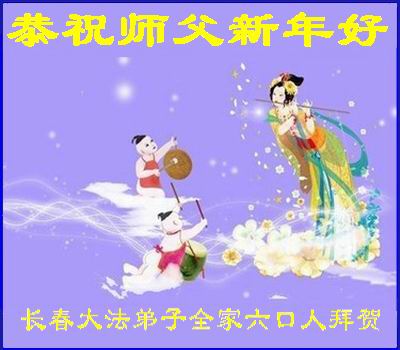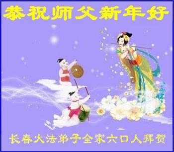 6、恭祝師父新年好!長春大法弟子全家六口人拜賀