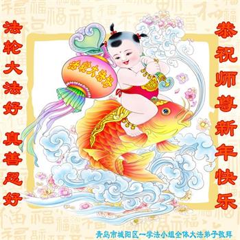 青島市城陽區一學法小組全體大法弟子給慈悲偉大的師尊拜年!恭祝師尊新年快樂!師尊辛苦了!