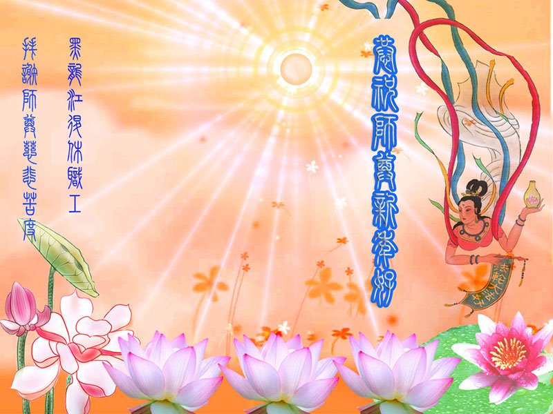 弟子感恩師尊的救度!在新的一年裏,更要好好的按照「法輪大法」法理的標準修煉,敬師敬法,做好「三件事」,兌現誓約,跟師尊回家!跪拜!合十!