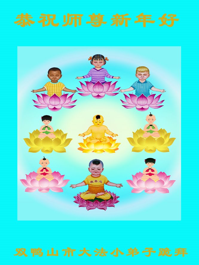 慈悲偉大的師尊過年好!我代表我母親同修和我兒子曾經當年的大法小弟子,囑咐我每次向師父問好帶上他及我們全家,還有我們學法小組全體大法弟子向慈悲偉大的師尊拜年!師尊過年好!我們全體小組大法弟子在新的一年裏努力做好三件事,請師尊放心!謝謝師尊!您辛苦了!