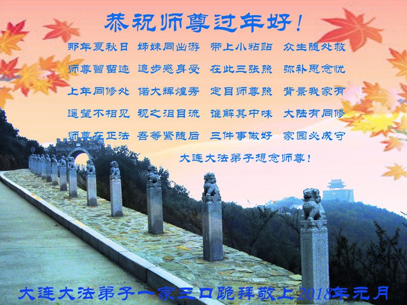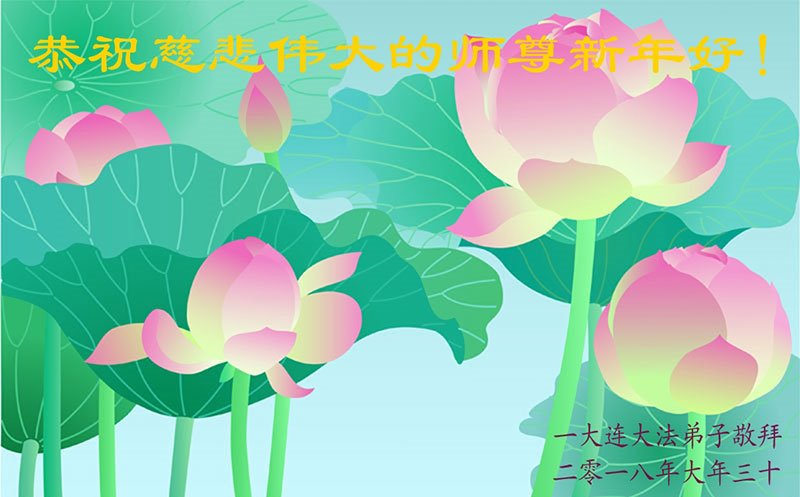 遼寧省大連一大法弟子及全家向慈悲偉大的師父恭祝新年好!