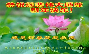 師尊過年好!師尊辛苦了!謝謝師尊!我們很幸運能得大法,能成為師父的弟子,我們從內心感激師父的慈悲苦度,謝謝師父!在這助師正法的最後時刻,我們要精進實修,做好三件事,兌現史前誓約,多救人,讓師父多一些欣慰,少一些操勞。
