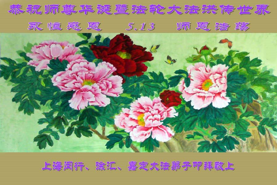 慈悲偉大的師尊好!師尊生日快樂!弟子愚笨無法用語言來表達弟子對師尊的感恩,在這普天同慶的日子裏,弟子跪拜恩師:師父好!法輪大法好!真善忍好!