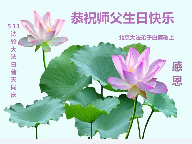 每年的五月十三日,都是人類應該永遠銘記的日子。這一天不僅是世界法輪大法日,也是每一位大法弟子共慶共祝的自己的節日。這一天更是偉大師尊的生日,是師尊慈悲眾生洪傳大法的起始紀念日。讓我們所有大法弟子,攜上家人、親人最真摯的祝願,帶上芸芸眾生最洪大的心願,恭祝我們偉大崇高的師尊生日快樂!合十