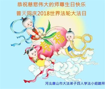 河北唐山市大法弟子四人學法小組:恭祝師尊生日快樂!普天同慶2018世界法輪大法日!共同精進,堅修到底!
