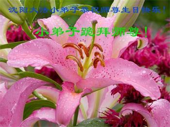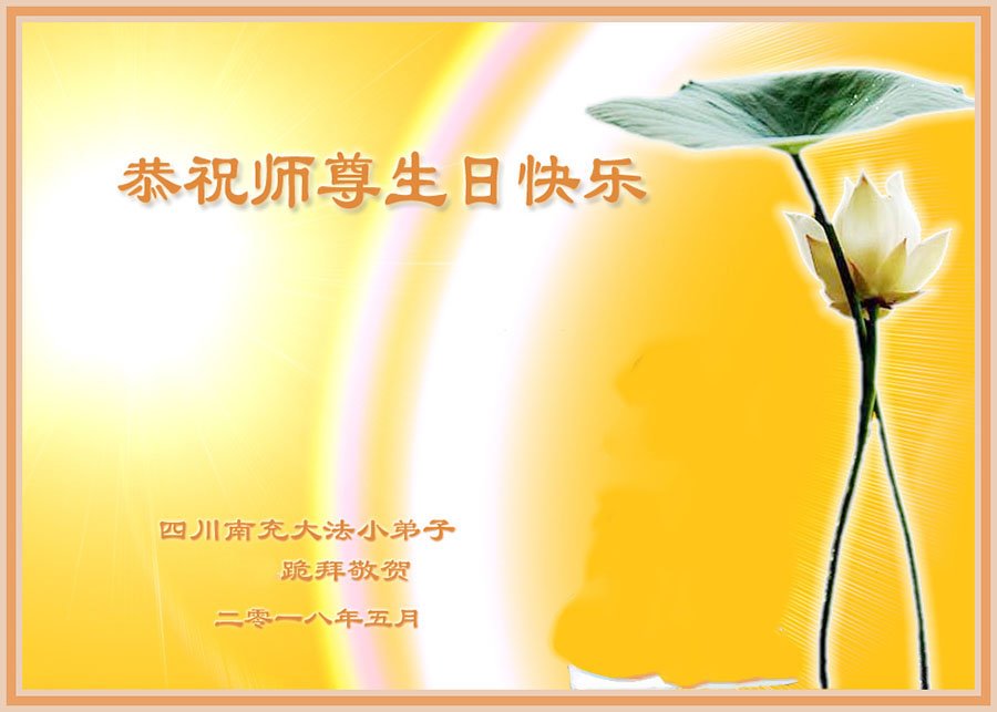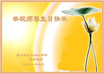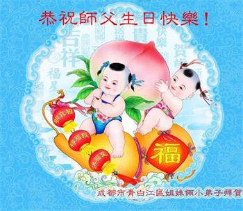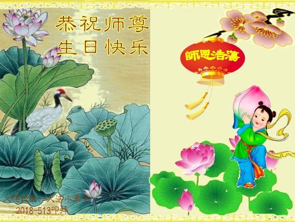 師父您好:小弟子KK謝謝師父,恭祝師父生日快樂!小弟子今年五歲多,就願意聽師父講法,會背幾首《洪吟》,小弟子每次來奶奶家都特別提醒:奶奶我們忘了一件事!接著快步跑到師父法像前踩著小板凳(此凳常年放在那是他專用的)跟奶奶一起給師父上香,並說:師父好!謝謝師父!我們全家謝謝師父救度之恩!感恩之情千言萬語也表達不盡!叩首跪拜!