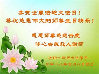 遼寧瀋陽一教師大法弟子恭賀世界法輪大法日!恭祝慈悲偉大的師尊生日快樂!