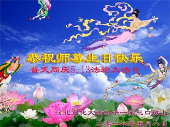 河北石家莊高校教師大法弟子恭祝師父生日快樂!熱烈慶祝世界法輪大法日!