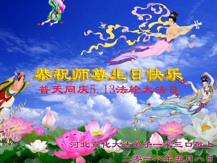 河北宣化大法弟子一家恭祝師尊生日快樂!普天同慶法輪大法日!