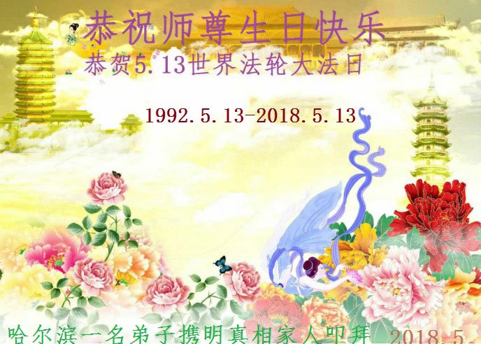 黑龍江省哈爾濱一名大法弟子攜明真相家人叩拜!恭祝師尊生日快樂!恭賀5﹒13世界法輪大法日!
