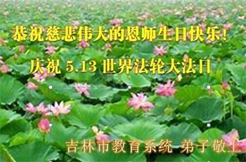 大陸教育工作者大法弟子恭祝世界法輪大法日!暨師尊華誕!