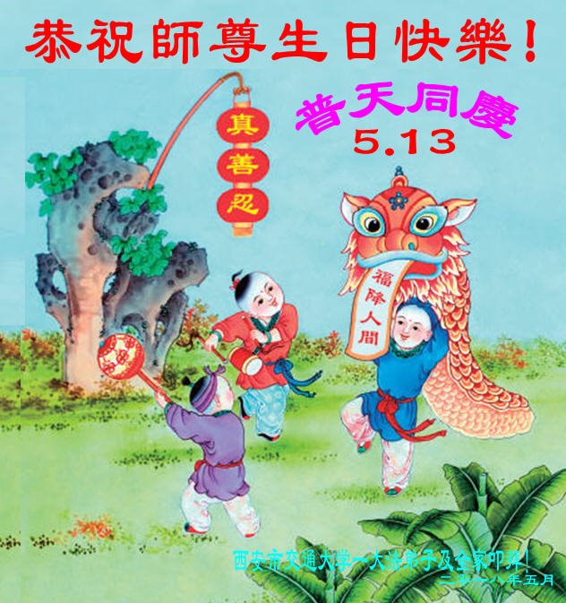 陝西省西安交通大學一大法弟子及全家叩拜師尊生日快樂!