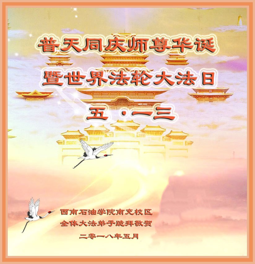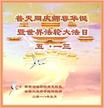 西南石油學院四川省南充校區全體大法弟子敬賀師尊華誕暨世界法輪大法日!