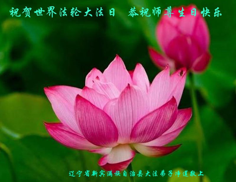 遼寧省新賓滿族自治縣大法弟子淨蓮開慶祝5.13世界法輪大法日!恭祝師尊生日快樂!