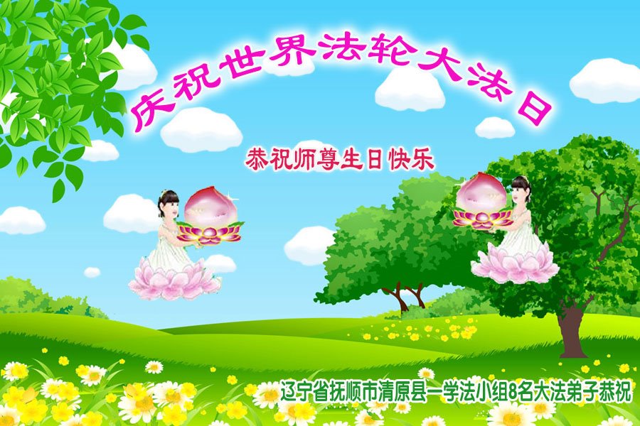 遼寧省撫順市清原縣一學法小組8名大法弟子恭祝師尊生日快樂!普天同慶世界法輪大法日!