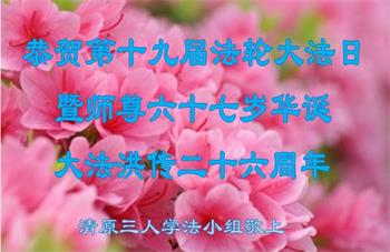 慶祝法輪大法洪傳世界二十六週年!我們一定遵照師尊教導去做,紮紮實實修好自己,在自己的心性上下功夫,做好三件事,多救人,跟師尊回家。
