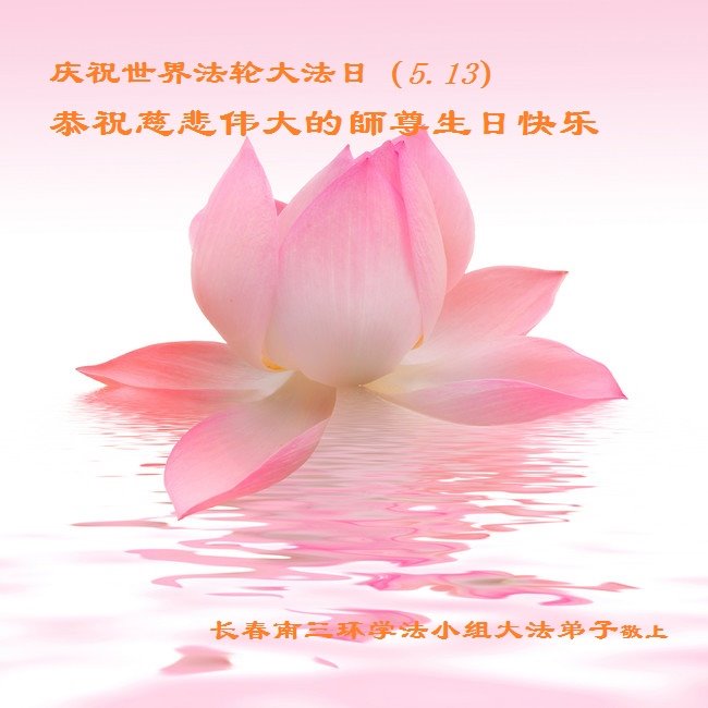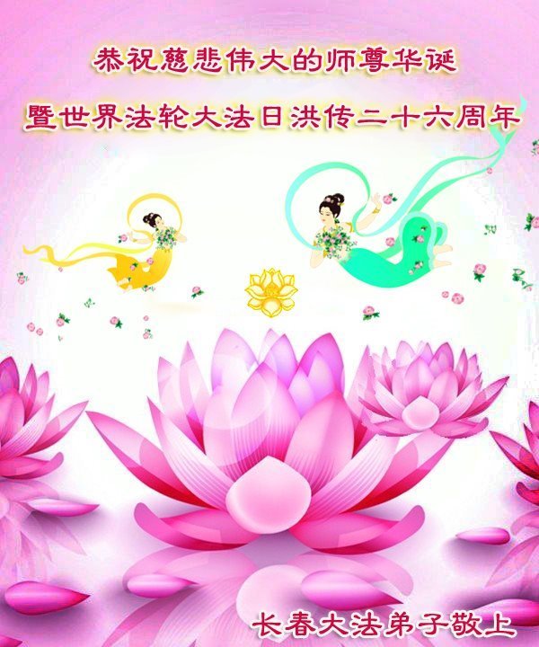 恭賀第十九屆世界法輪大法日暨法輪大法洪傳二十六週年!師尊您辛苦了!弟子跪拜慈悲的師尊!弟子們非常想念師父!弟子們要按照師父的要求,做好三件事,學法修心向內找,多救人。