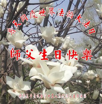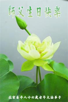 師尊您好!師尊您辛苦了!值此師父生日來臨之際弟子祝師尊生日快樂!感恩師尊的慈悲苦度,回憶二十年的修煉歷程,師尊把我從地獄撈起,給我淨化了身體,使我走上一條返本歸真之路,感恩師尊在我丈夫病危之難中救了他的命!我要抓緊一切時間,靜心學法、多學法, 修好自己多救人,多取人心,兌現史前誓約,弟子想念您,盼您早日回大陸。和師尊回家。再次衷心的祝願師尊生日快樂!跪拜父尊。