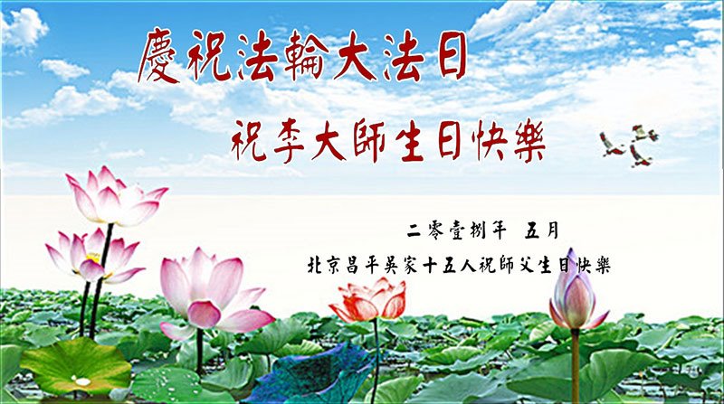 北京昌平一大法弟子親屬慶祝世界法輪大法日!