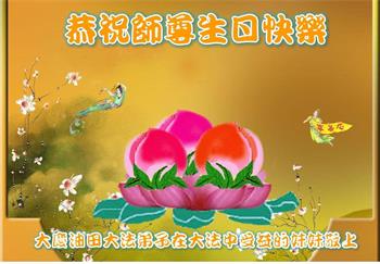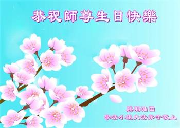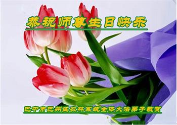 師尊啊,我們作為您的弟子,感到無比的榮幸!值此,請允許我代表原二輕局系統所有大法弟子對您說:師父您辛苦了!祝師父生日快樂!我們要以祥和的心態面對世人,做好師尊囑咐的三件事,尤其是講清真相,多救眾生。用大法標準嚴格要求自己,修好自己的一思一念,做合格的大法弟子,兌現誓約,圓滿隨師還!叩謝師尊!