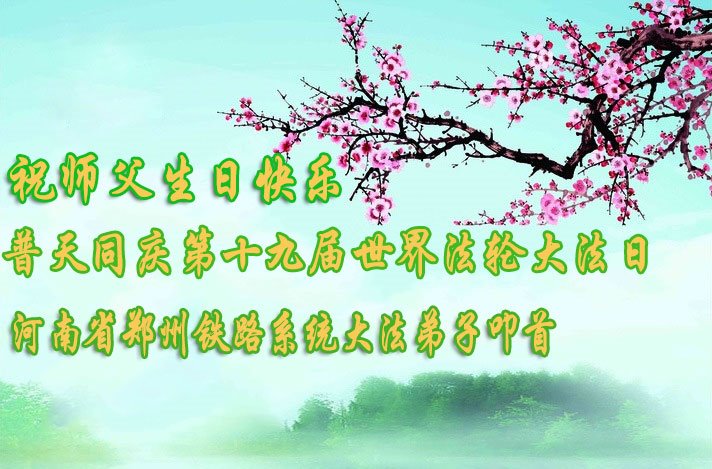 河南省鄭州鐵路系統大法弟子恭賀師尊華誕!普天同慶世界法輪大法日!